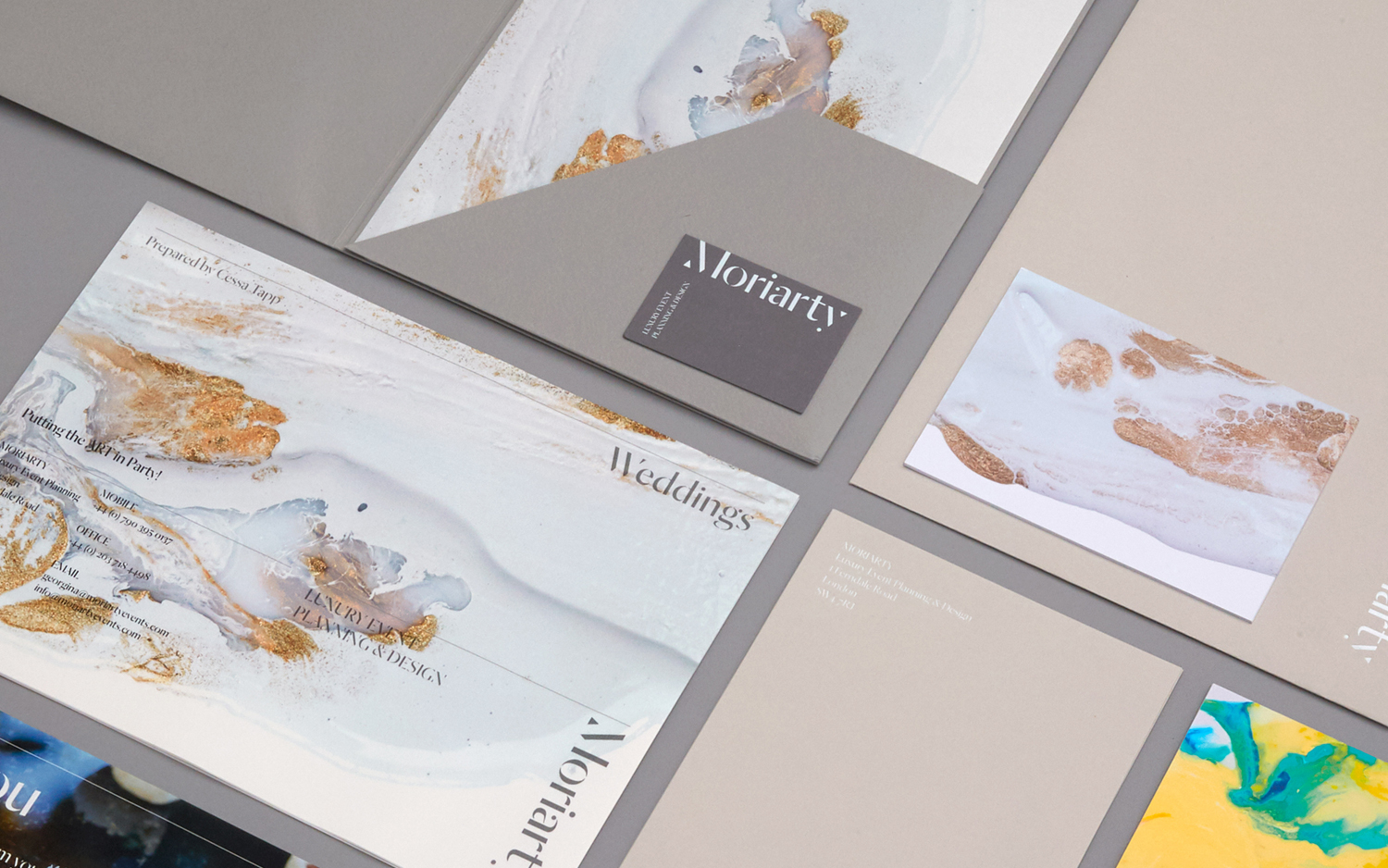 受派對的自發性和慶祝能量的啟發,設計工作室Bond基于一系列抽象的水墨插圖,為新的豪華活動策劃業務Moriarty打造了一個視覺形象。它們與高品質的染色紙和紙板搭配,與包括文件夾、名片和宣傳文件在內的印刷資產形成了鮮明的對比。
