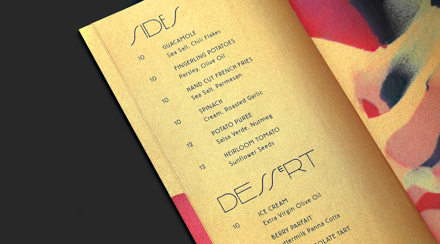 金色時刻標志是一個簡單的沙漏,它起到了關鍵的作用,就像用一種直接的方式命名時間和時間流逝的中心前提,捕捉田園詩般的時刻,夏日落日的色彩和溫暖。這是在一家致力于季節性的餐廳的背景下進行的,這進一步證明了這一點。Triboro將其作為一種獨特的圖形和材質表現。