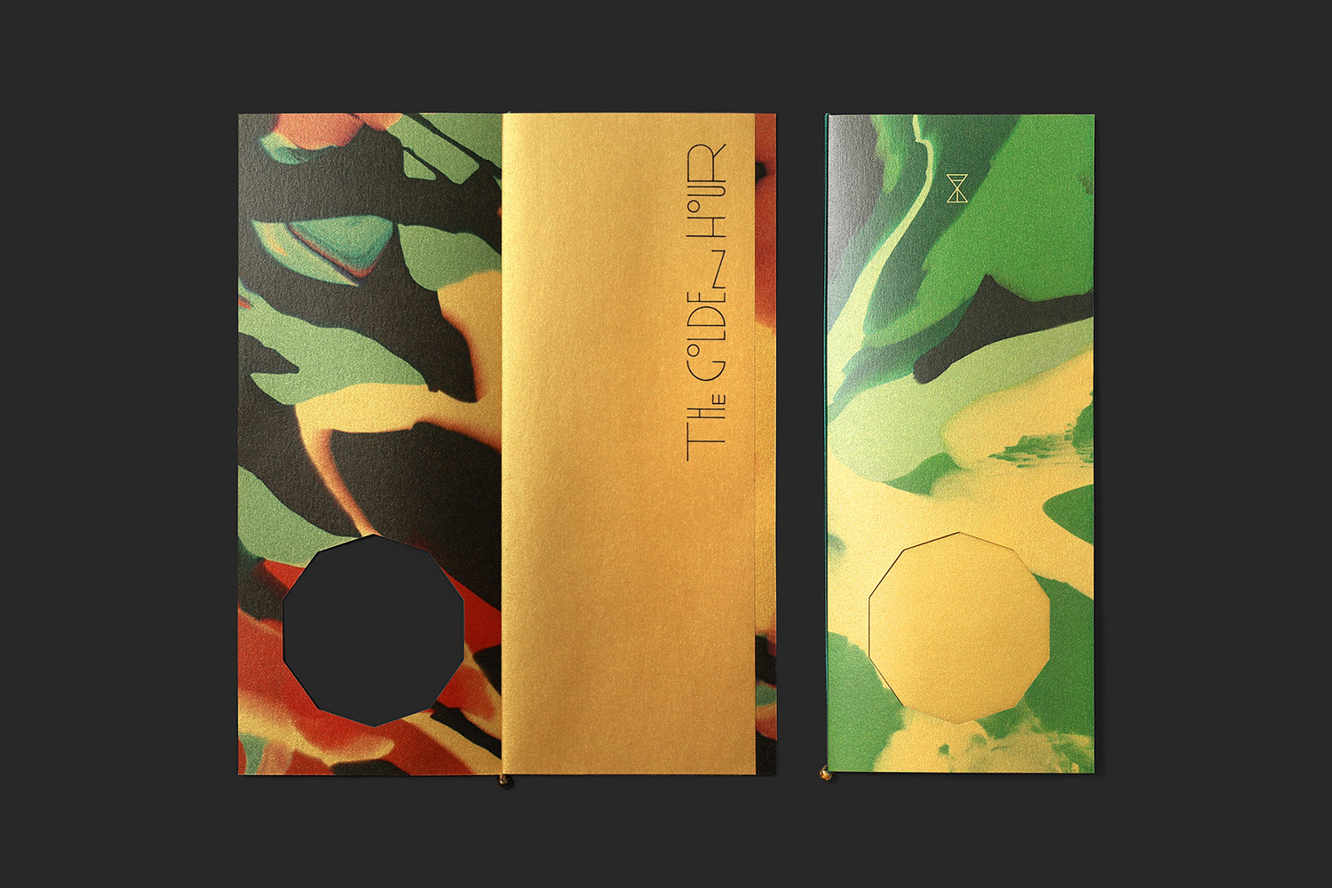 餐廳空間被描述為一個郁郁蔥蔥的室外餐廳,黃銅桌子與熱帶植物和花園過道相交。飲料以避暑為中心,以北大西洋夏末的風味為靈感,制作出適合戶外享用的菜肴。在空間考慮、表演方面、餐廳內隨時間發生的轉變(小盤子到大盤子)以及對時間和地點的召喚方面,都有一種戲劇體驗。這種時間性也體現在《黃金時刻》的視覺特征設計中,在圖形和材料的交叉中,在美國設計工作室Triboro在菜單、杯墊、筆記卡、名片和網站上使用抽象主題、形狀和符號中。