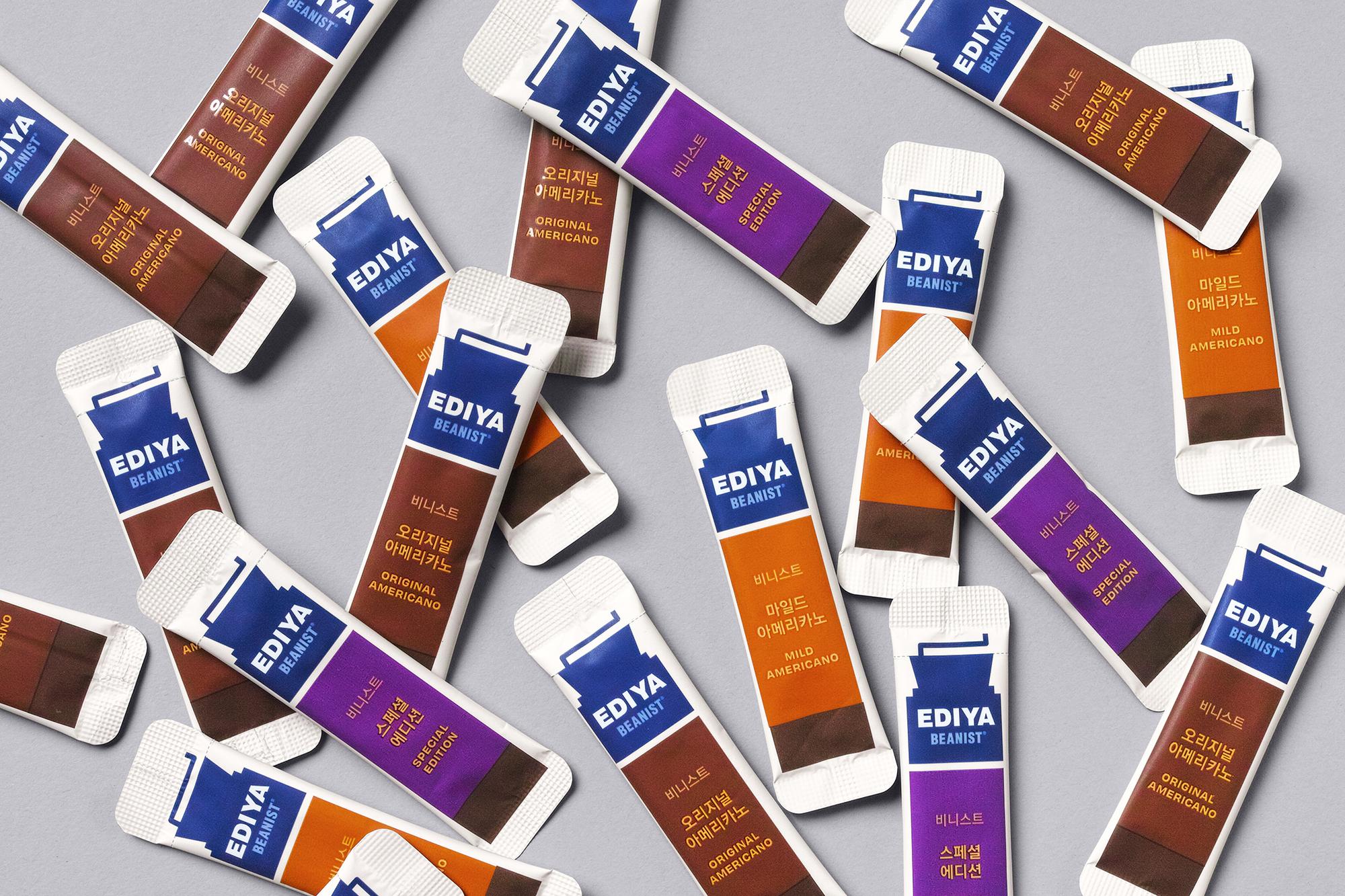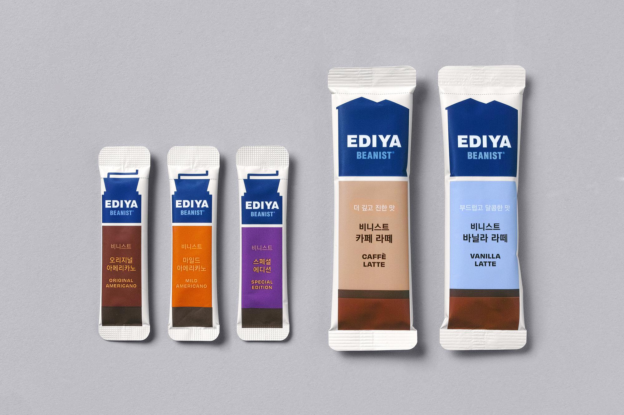 EDIYA通過其門店的日常運營,實時了解市場變化以及消費和需求的變化,形成了深刻的區域洞察力。這與一整套端到端的生產能力相結合,從原料采購到加工,再到烘焙,再到在自己的咖啡實驗室開發產品。EDIYA利用這一經驗創建了BEANIST,一個新的家庭釀造品牌。并與Studio fnt合作創建品牌和包裝。該工作室試圖利用該公司咖啡店招牌的各個方面,保持EDIYA的品牌資產,并通過形式、顏色和傳播,使這一新品牌在競爭激烈的速溶咖啡市場中脫穎而出。