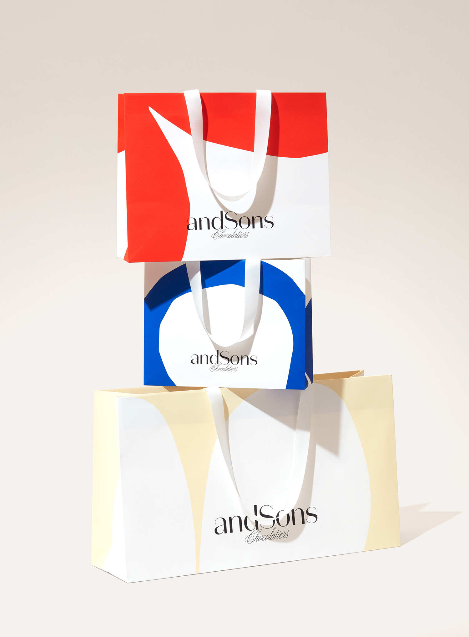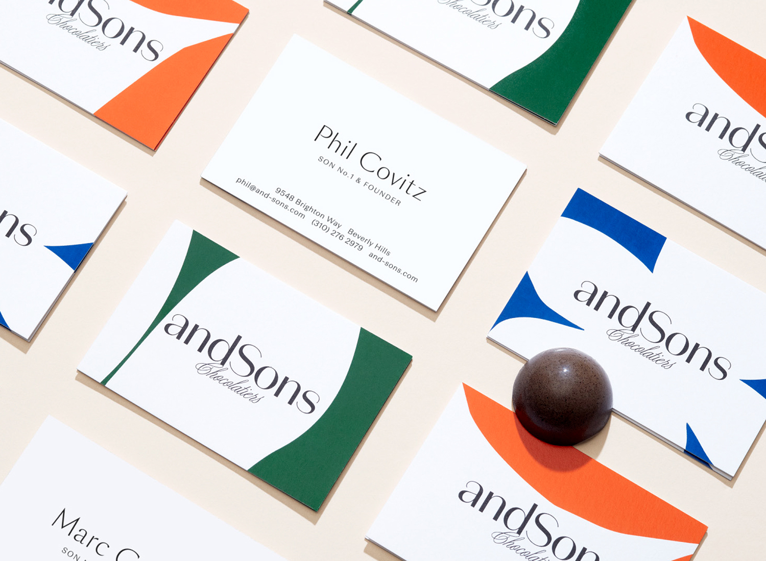 andSons是一家第二代巧克力制造商和零售商,由Marc和Phil Covitz經(jīng)營,他們兩兄弟從母親那里學(xué)到了所有關(guān)于優(yōu)質(zhì)巧克力的知識。在十大糕點廚師克里斯·哈維(Kriss Harvey)和兄弟們的共同推動下,父子公司試圖為手工巧克力世界提供新的東西,在他們的傳統(tǒng)歐洲傳統(tǒng)和所在地洛杉磯的當代創(chuàng)意之間找到了一個界限。考慮到這一定位,公司委托Base Design創(chuàng)建一個標志性的圖形標識和包裝設(shè)計,該設(shè)計將捕捉基于傳統(tǒng)的創(chuàng)新精神,既精致又奢華,同時又有趣又令人驚訝。這些意圖交織在一起,并通過簡單而優(yōu)雅的標識、醒目的彩色圖案和白色空間,以及使用彩色箔和可互換的袖子來表達。