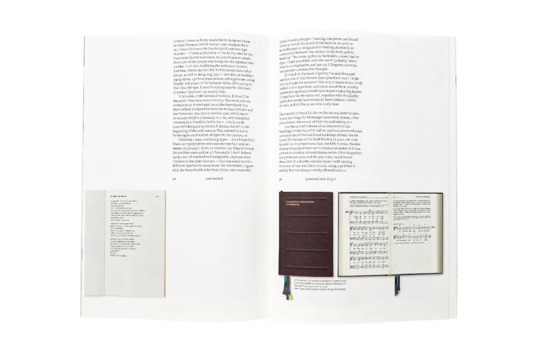于是這個德語區的瑞士人先做了一件很德國的事情,他先去琢磨了一下這個問題中的關鍵詞的詞義。“我所知道的 ‘systematics’的最簡潔的定義是我在1993年的《Schweizer Lexikon》中發現的——‘一個有計劃的整體展示或設計’。根據德國Brockhaus encyclopaedia,‘systematic’作為一個形容詞的意思是‘根據一個系統,有方法的,有計劃的;與一個系統相對應’。所以,‘systematic book design’是指遵循著在做書工作開始前就預先設定的計劃進行書籍設計。”Hochuli以此作為他的演講文章的開篇。